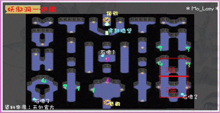 妖邪洞1樓、妖邪洞2樓、妖邪洞3樓、妖邪洞曲腸道、拜妖壇、妖邪洞鎖殿