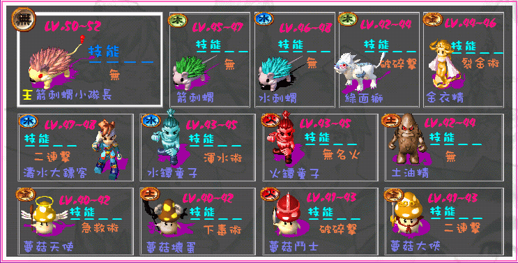 蕈菇徵章、蠟蠋、獅子的尾巴、大酒罈、墨汁、刺蝟皮、迴力鏢